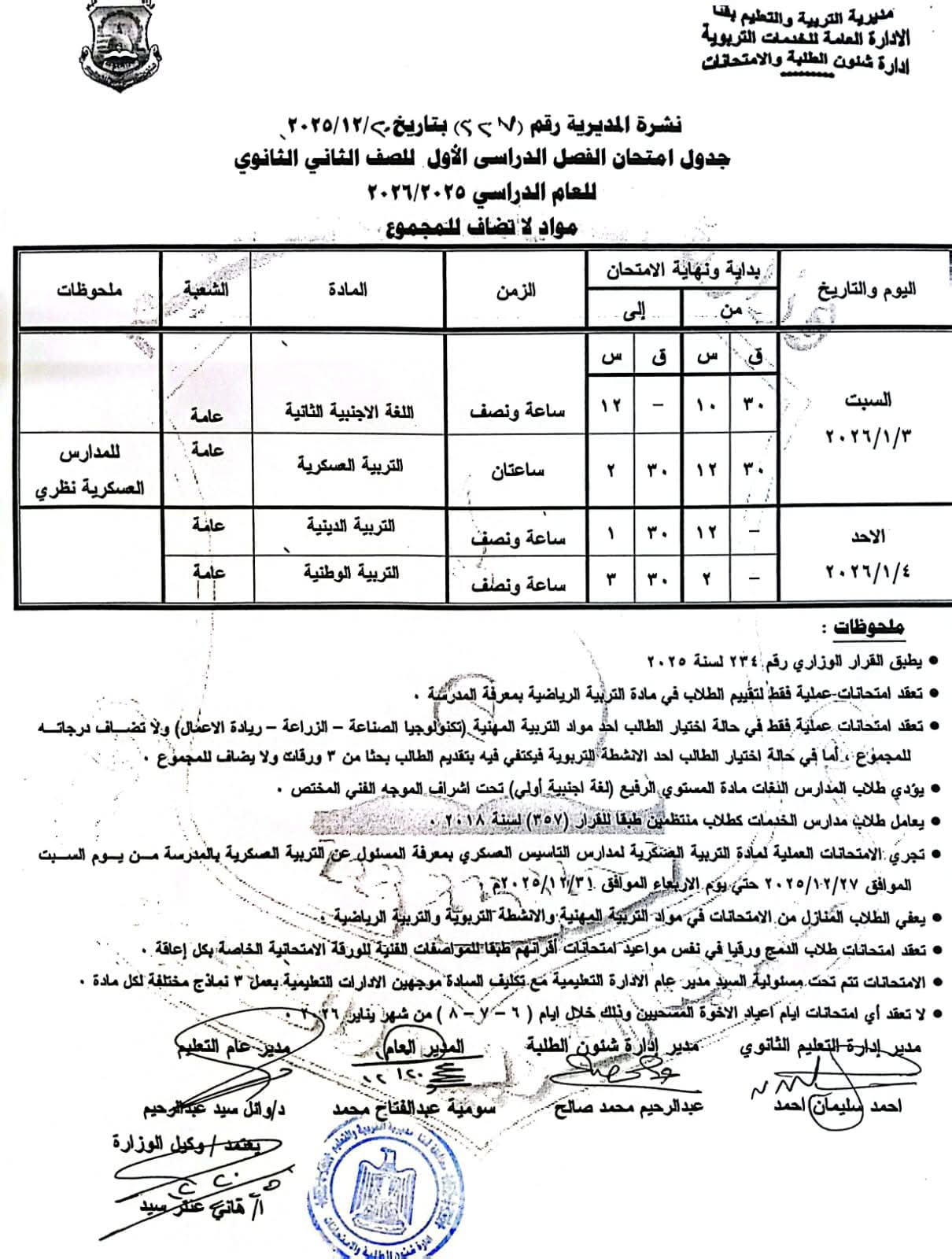 واشار المحافظ إلى أنه تمت مراعاة عدم تعارض مواعيد الامتحانات مع المناسبات الدينية واحتفالات أعياد الإخوة المسيحيين، فضلًا عن مراعاة الإجازات الرسمية، بما يضمن تحقيق الانضباط وسلامة سير الامتحانات على مستوى المحافظة.