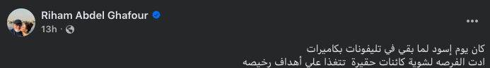 وكتبت ريهام عبدالغفور في منشور لها عبر حسابها الرسمي على موقع التواصل الاجتماعي فيسبوك: « كان يوم أسود لما بقي في تليفونات بكاميرات ادت الفرصة لشوية كائنات حقيرة تتغذا علي أهداف رخيصة»، في إشارة إلى إساءة استخدام التصوير ونشر المحتوى خارج سياقه.