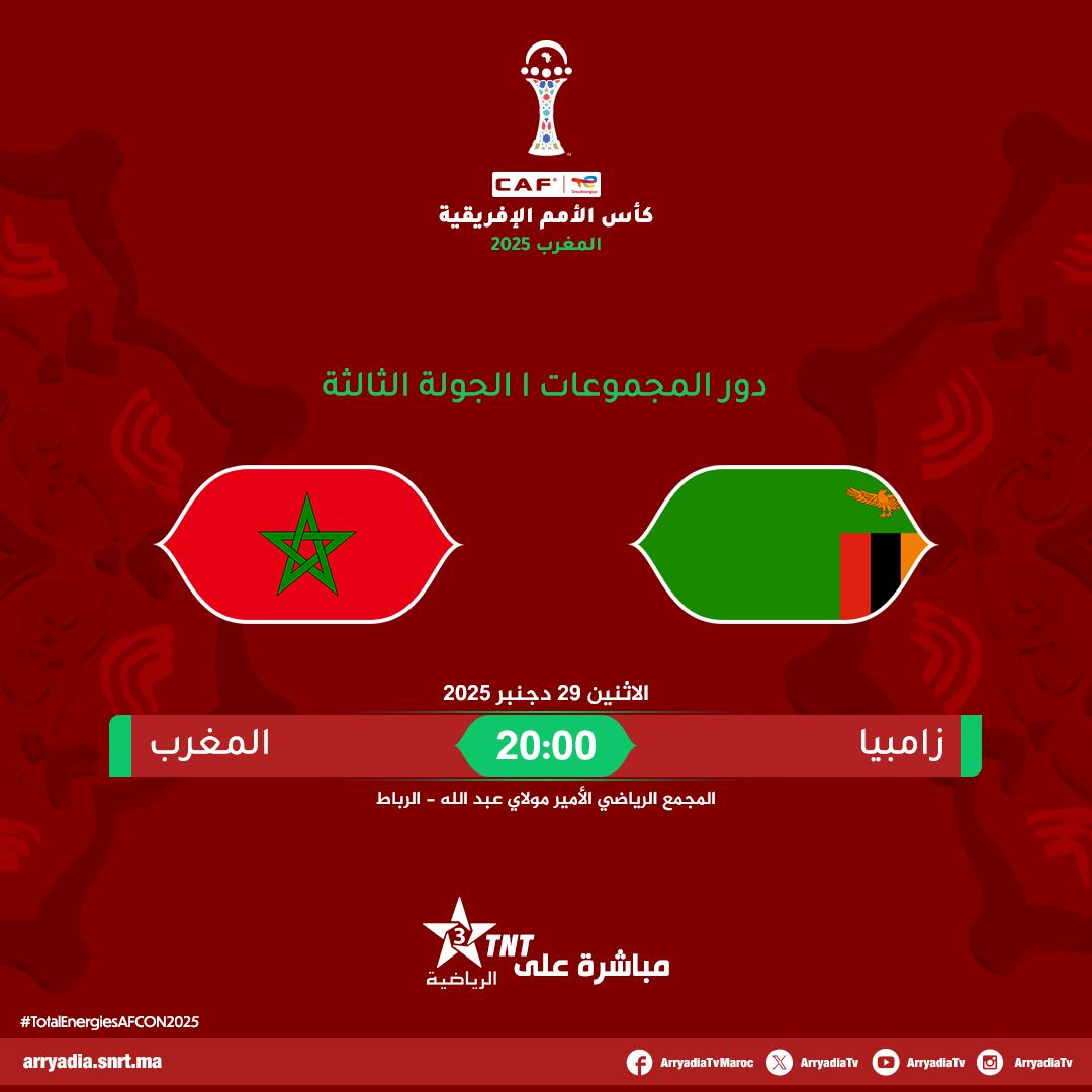 موعد مباراة المغرب ضد زامبيا اليوم فى كأس الأمم الإفريقية 2025