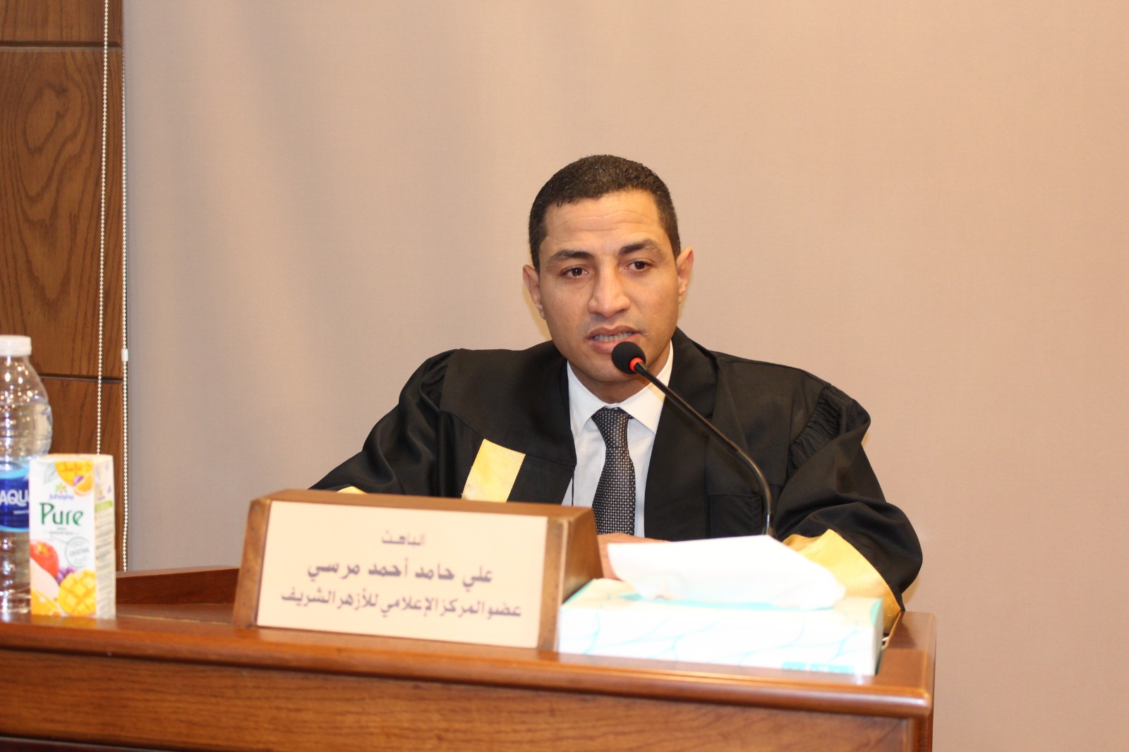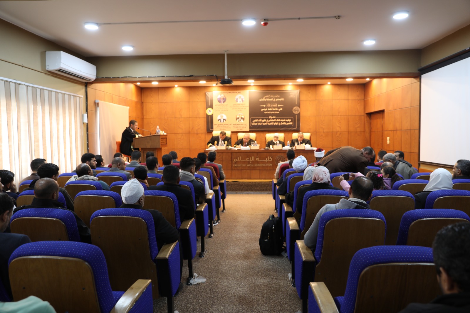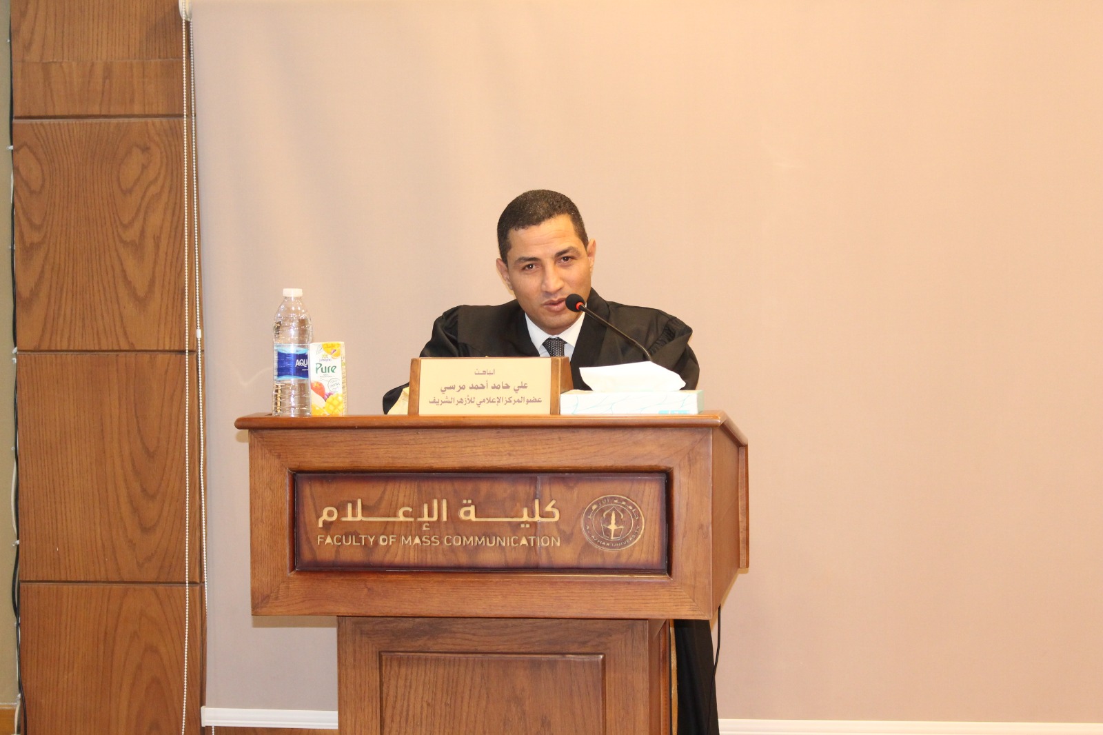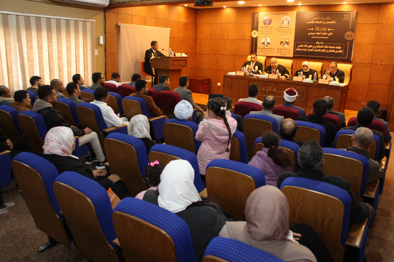 وأقيمت المناقشة بحضور كوكبة من قيادات الأزهر الشريف، وعلى رأسهم الأستاذ الدكتور سلامة داود رئيس جامعة الأزهر، والأستاذ الدكتور عباس شومان وكيل الأزهر الأسبق، والأستاذ الدكتور رضا عبد الواجد أمين عميد كلية الإعلام، والأستاذ الدكتور أحمد خليفة الشرقاوي وكيل قطاع المعاهد الأزهرية، والأستاذ الدكتور ولاء العقاد، عميدة كلية الإعلام للبنات بجامعة الأزهر، والدكتور أحمد بركات، مدير المركز الإعلامي للأزهر الشريف، ووكلاء وأساتذة كلية الإعلام بجامعة الأزهر.