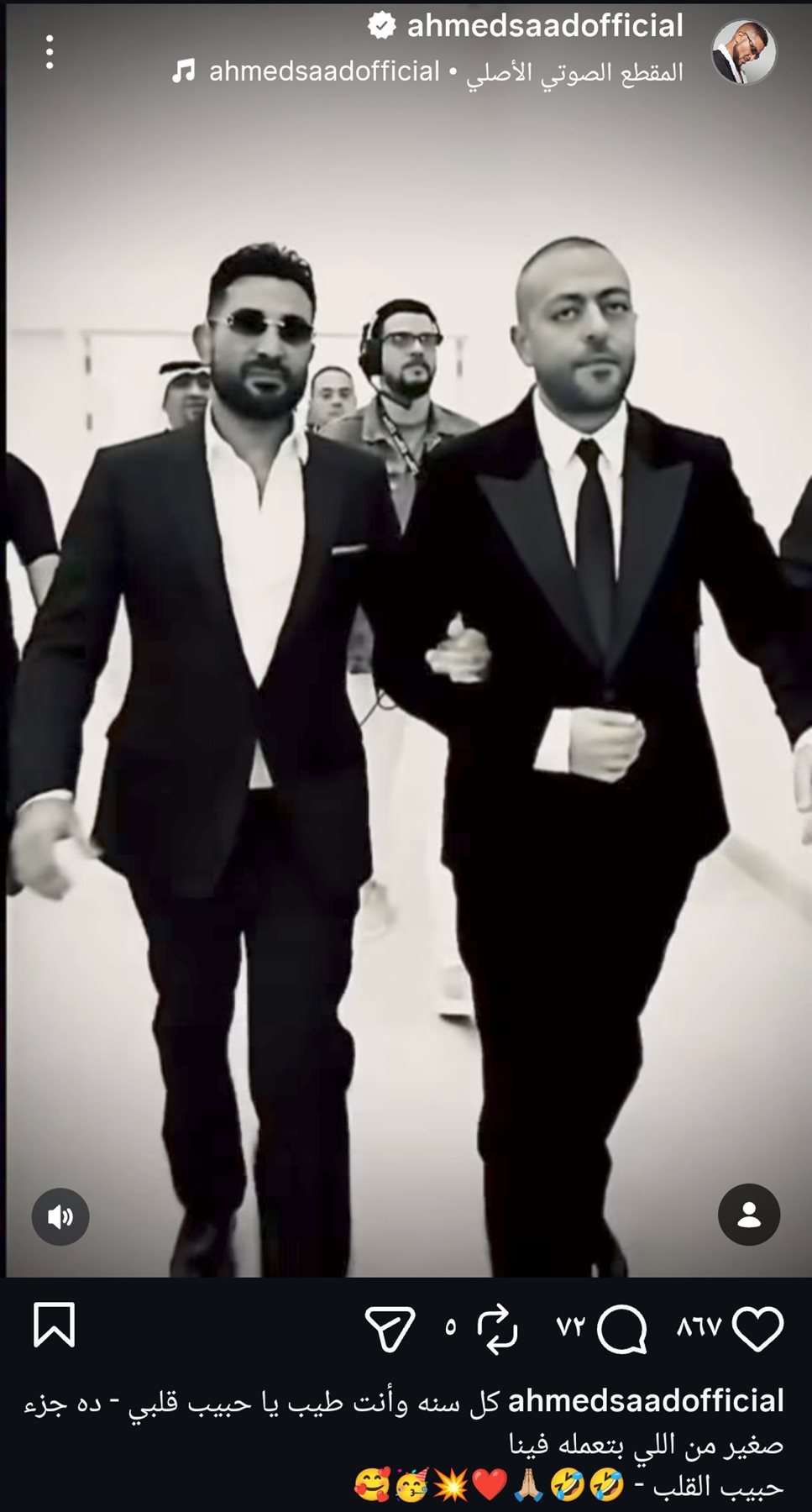 ونشر أحمد سعد، مقطع فيديو يجمعه بتامر عاشور، ووضع عليه مقطع فيديو وهو يغني له بطريقه “سنة حلوة يا جميل” ولكن بطريقة حزينه مثل أغاني "عاشور"، وذلك عبر حسابه الشخصي بموقع تبادل الصور والفيديوهات الشهير إنستجرام.
