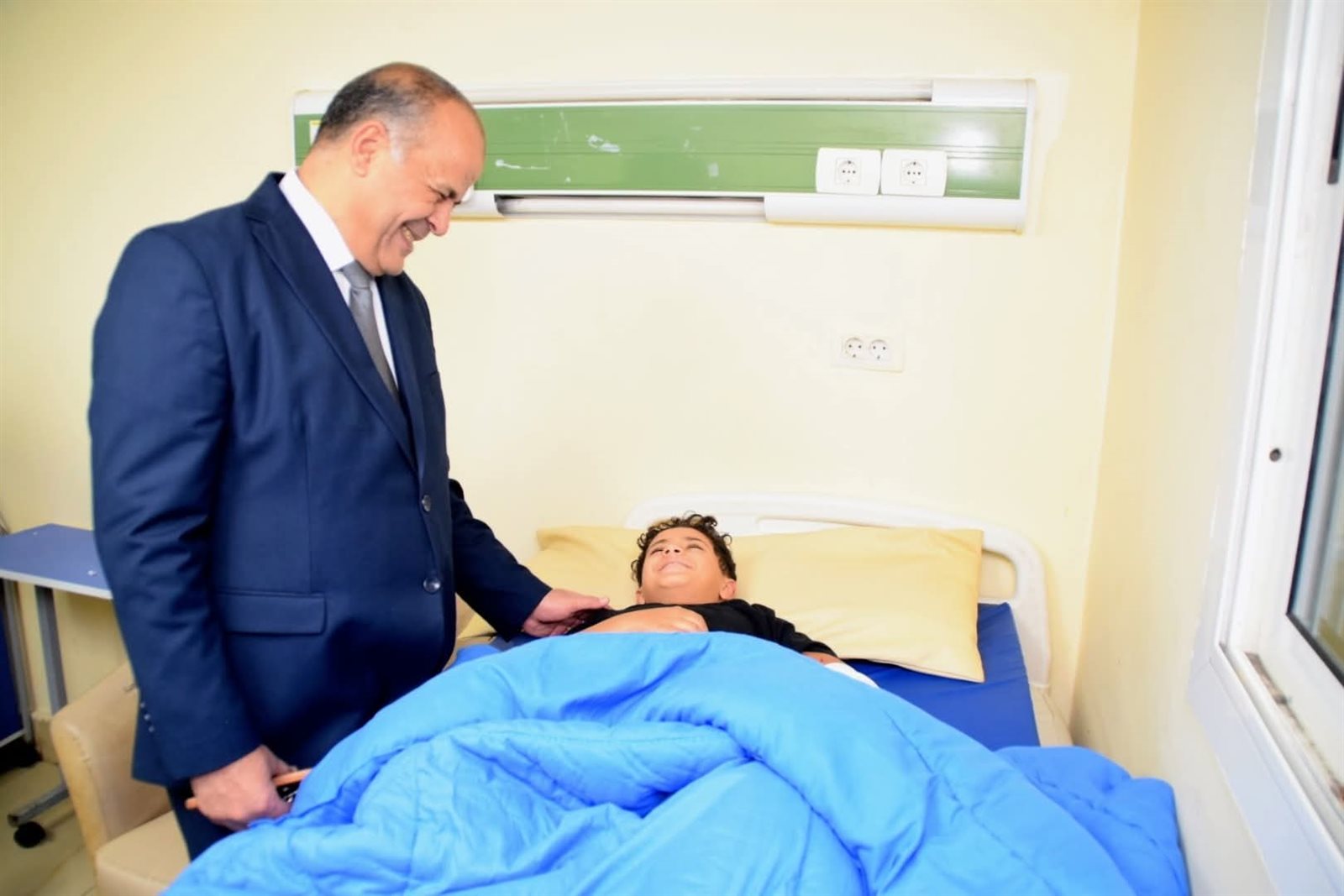 مدير " تعليم بورسعيد " يطمئن على آدم الدياسطي تلميذ مدرسة الشهيد محمد صبري