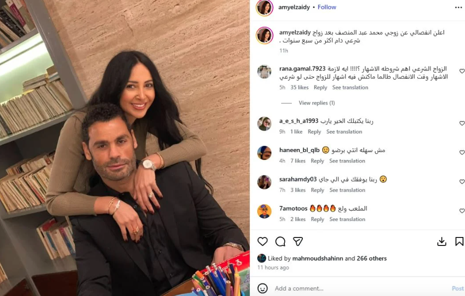 وجاء في المنشور المتداول: «أعلن انفصالي عن زوجي محمد عبد المنصف بعد زواج شرعي دام أكثر من سبع سنوات»، كما نشر الحساب المزعوم صورة خاصة للفنانة مع ابنتهما «أوسة»، مؤكدة أن الطلاق تم بعد زواج شرعي استمر 7 سنوات، وهو ما أثار حالة واسعة من الجدل والتساؤلات على مواقع التواصل الاجتماعي.