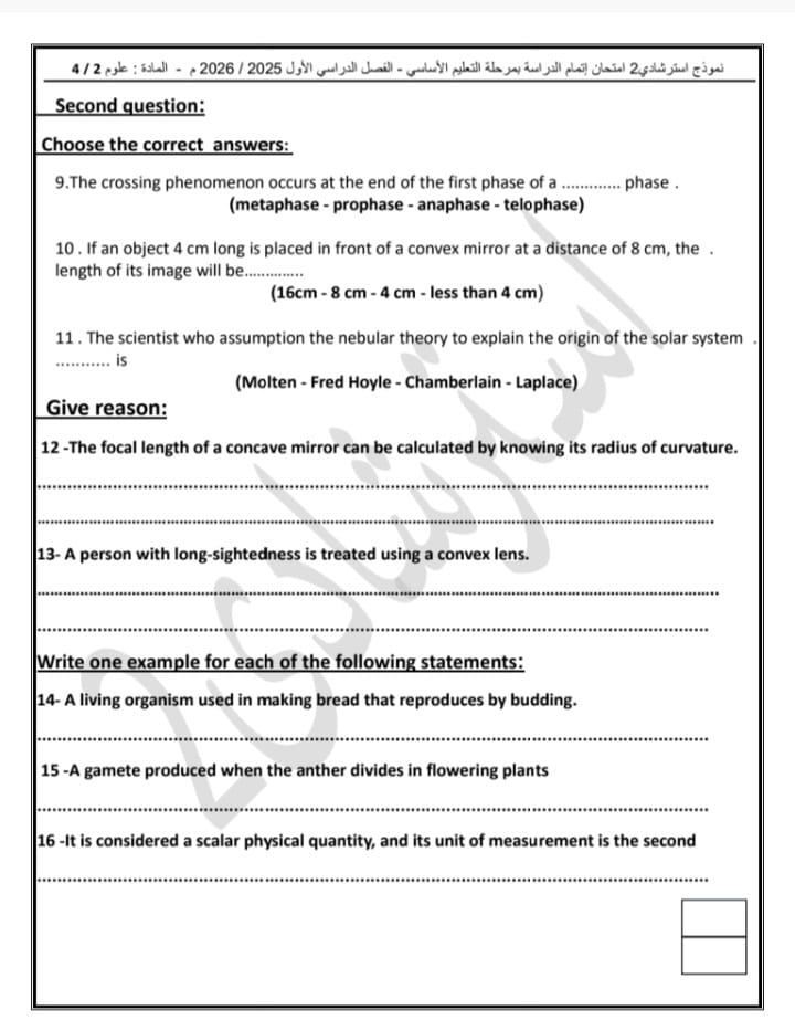 تعليم القاهرة تنشر النموذج الثاني لبوكليت Science لطلاب الشهادة الإعدادية