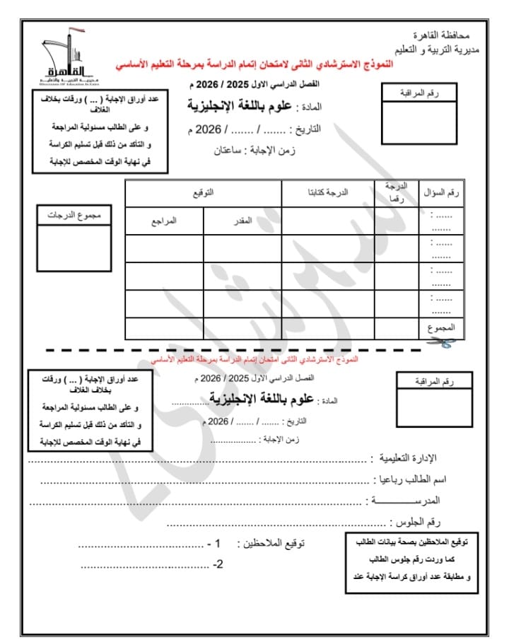 واختتمت المديرية بتقديم أطيب الأمنيات بالتوفيق والنجاح لجميع الطلاب، مؤكدة استمرار نشر باقي النماذج تباعًا عبر المنصات الرسمية.