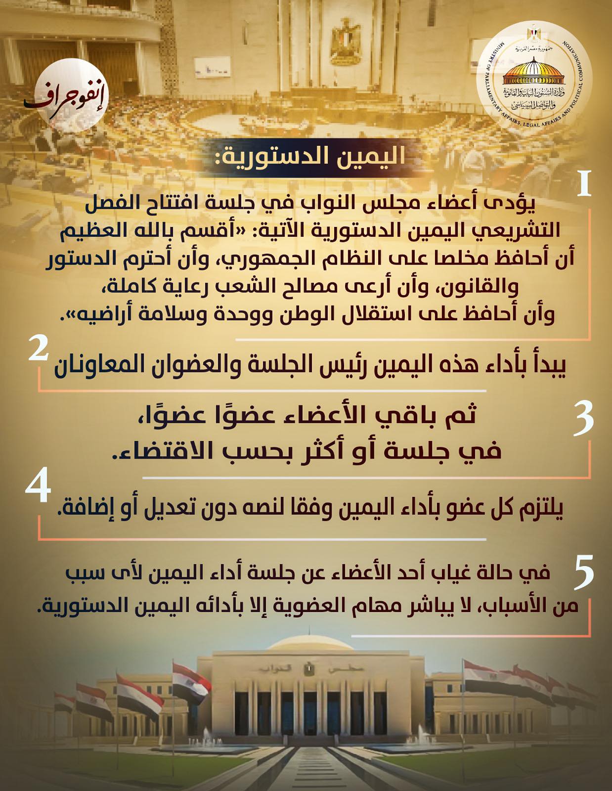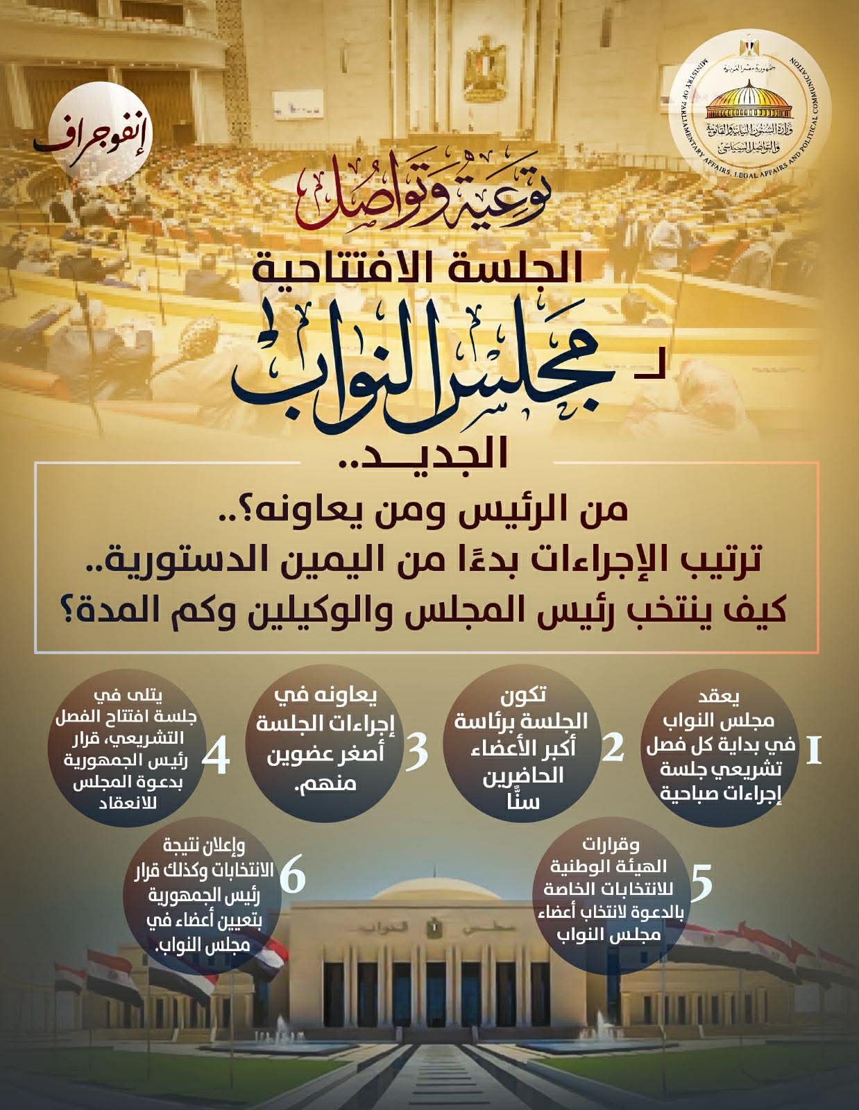 وزارة الشؤون النيابية تصدر سلسلة جديدة من الإنفوجراف بشأن إجراءات افتتاح مجلس النواب
