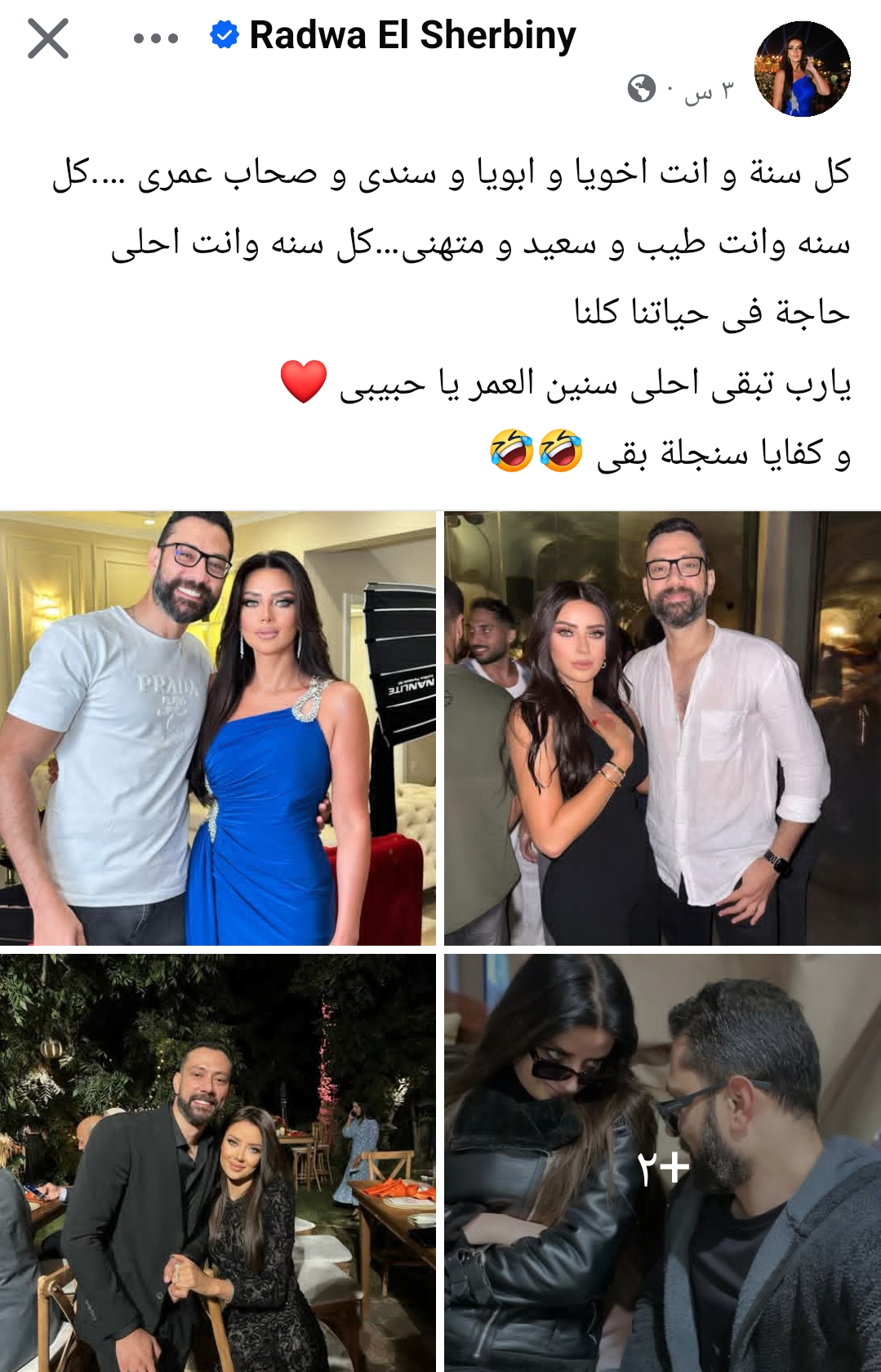 وعلقت رضوى الشربيني على الصور، قائلة: “كل سنة وانت أخويا وأبويا وسندى وصحاب عمرى ….كل سنه وانت طيب وسعيد ومتهنى…كل سنه وانت أحلى حاجة فى حياتنا كلنا، يارب تبقى أحلى سنين العمر يا حبيبى، وكفايا سنجلة بقى”.