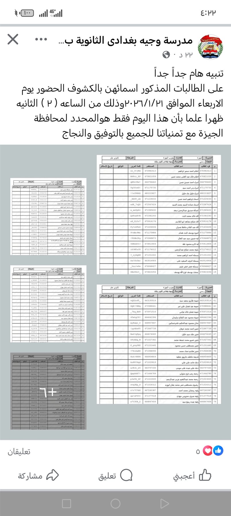 وفى هذا السياق، أعلنت إحدى مدارس الثانوية بمحافظة الجيزة، كشوفات بأسماء 190 طالب سيتم إعادة اختبار مادة البرمجة، بعد ورود أسمائهم ضمن الطلاب الذين تعذر عليهم أداء الامتحان العملي