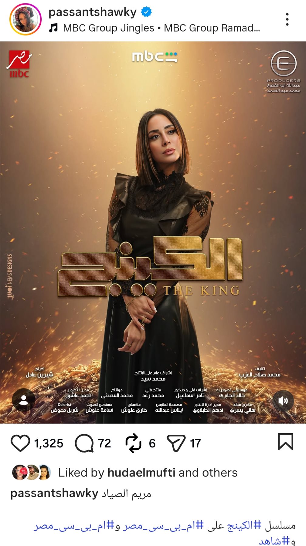 روجت الفنانة بسنت شوقي لشخصيتها في مسلسل «الكينج»، والمقرر عرضه خلال موسم رمضان 2026.