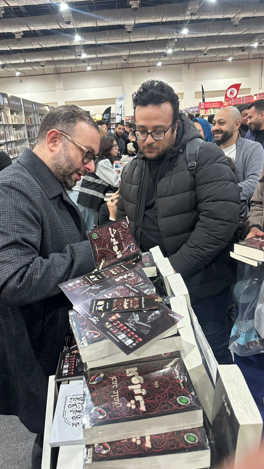 شهد جناح الدار المصرية اللبنانية تدفقًا كبيرًا من القراء والمثقفين منذ الساعات الأولى، حيث اصطفت طوابير طويلة من الشباب والمهتمين بالأدب المعاصر للحصول على نسخة موقعة من الرواية الجديدة. وقد حرص الكاتب أحمد عثمان على تبادل الأحاديث الودية مع قرائه والتقاط الصور التذكارية، في مشهد يعكس الرابط القوي بينه وبين جمهوره.