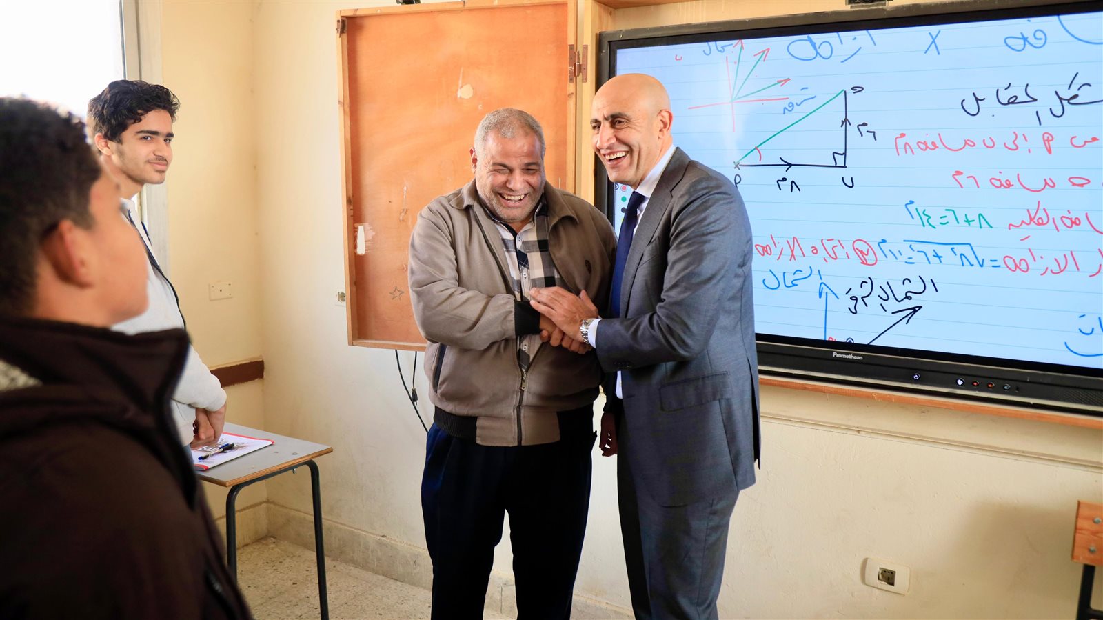 ثم توجه الوزير لمدرسة بدر الثانوية بنين التابعة لإدارة التحرير التعليمية والتى تضم عدد ٦٤١ طالبا، حيث حرص الوزير على إجراء حوار مع طلاب الصف الأول الثانوي حول تجربتهم في دراسة مادة البرمجة، واستطلاع آرائهم بشأن مدى استيعابهم للمادة وسهولة الامتحان، وأهمية الحصول على شهادة إتمام البرمجة إلى جانب مناقشة أساليب التدريس المتبعة، وإمكانية الاستفادة منها وتطبيقها في مواد دراسية أخرى، من بينها مادة الرياضيات.