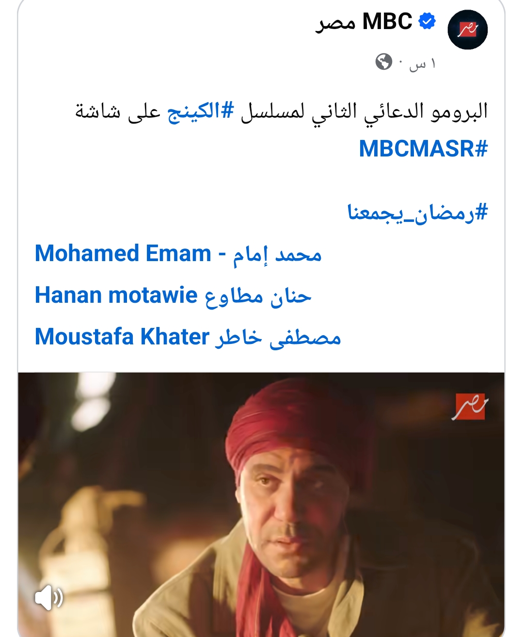 ونشرت الصفحة الرسمية لقناة mbc مصر، فيديو البرومو، على موقع التواصل الاجتماعي فيسبوك، وكتب تعليقا: “البرومو الدعائي الثاني لمسلسل الكينج على شاشة MBC MASR، رمضان يجمعنا”.