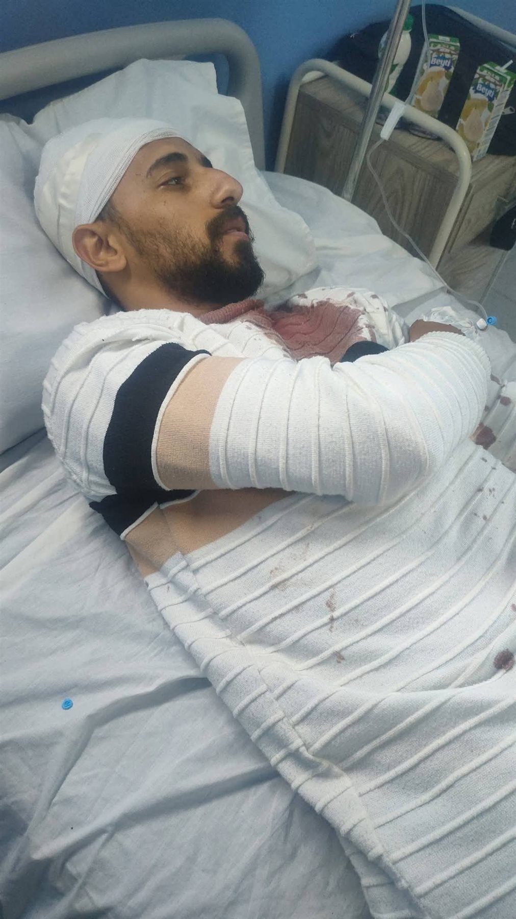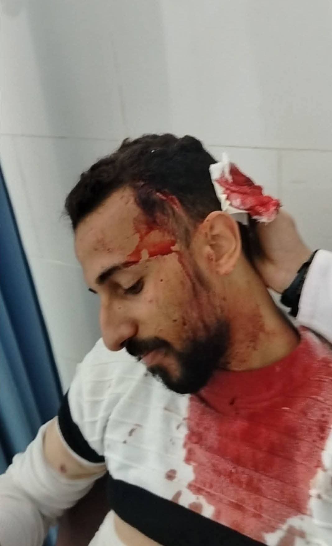 فما كان من المحامي إلا أن بادره بلكمات على وجهه، فسقطت النظارة مكسورة على الأرض، وعندما نزل الفني لالتقاطها، أخرج هذا المعتدي سلاح أبيض من حوزته، وطعنه بها عدة مرات في رقبته وصدره.. وعندما حاول أحد الأفراد إقصاء الفني من مكان الطعن أصيب بطعنه نافذة في يده، استدعت خياطتها 15 غرزة.