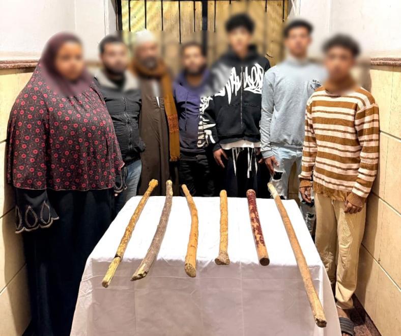 وتمكنت أجهزة وزارة الداخلية من تحديد وضبط عدد (7) أشخاص "الظاهرين بمقطع الفيديو" (شقيقة المجنى عليه، زوجها، 5 أشخاص آخرين) جميعهم مقيمون بدائرة المركز، وبحوزتهم (6) عصى "المستخدمين فى التعدى".
