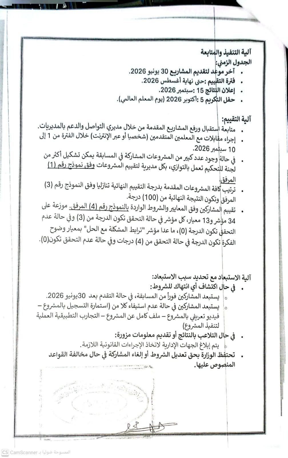 5-تحتفظ الوزارة بحق تعديل الشروط أو إلغاء المشاركة في حال مخالفة القواعدالمنصوص عليها.