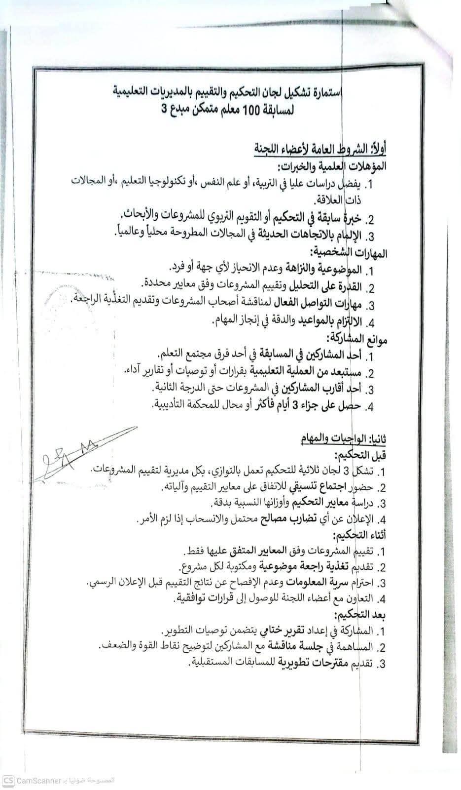 -في حالة وجود عدد كبير من المشروعات المشاركة في المسابقة يمكن تشكيل أكثر من لجنة للتحكيم تعمل بالتوازي، بكل مديرية لتقييم المشروعات وفق نموذج رقم (1) المرفق.