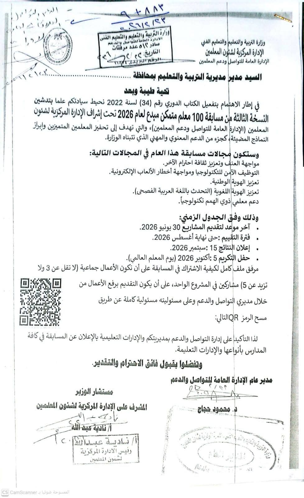 حفل التكريم: 5 أكتوبر 2026 (بالتزامن مع يوم المعلم العالمي).