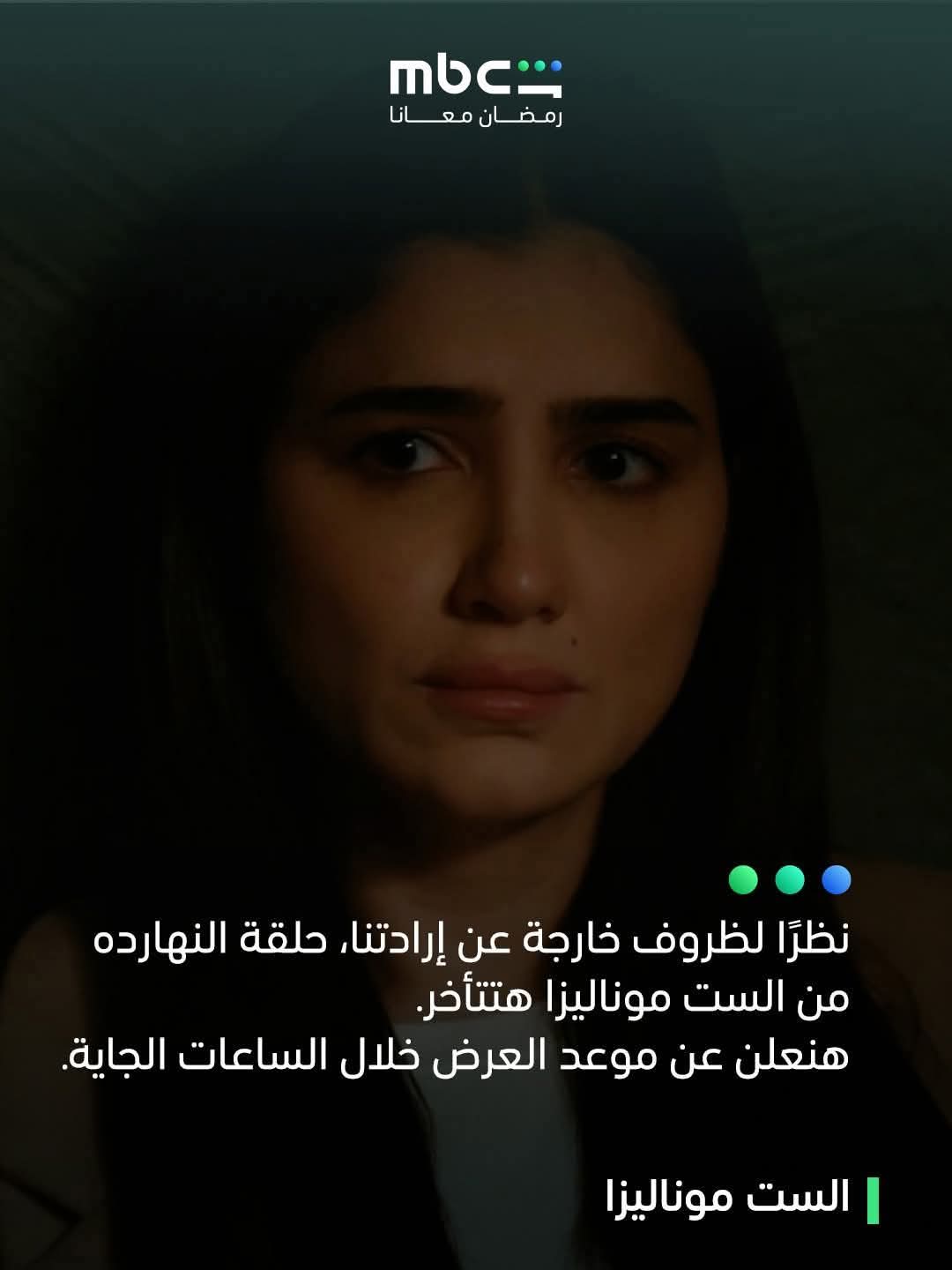وكتبوا عبر صفحاتهم على مواقع التواصل الاجتماعي: “نظرا لظروف خارجة عن إرادتنا، حلقة النهاردة من الست موناليزا هتتأخر، هنعلن عن موعد العرض خلال الساعات الجاية”.