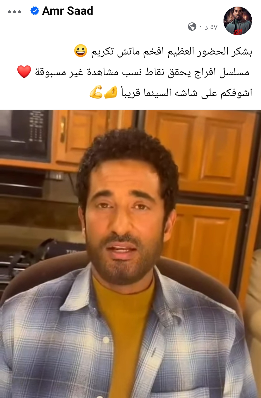 وقال عمرو سعد في فيديو نشره، عبر حسابه الشخصي على موقع التواصل الاجتماعي فيسبوك، إن نسب المشاهدة التي وصلته من مختلف الجهات تؤكد أن المسلسل حقق “أكبر نجاح وأعلى نسب مشاهدة”.