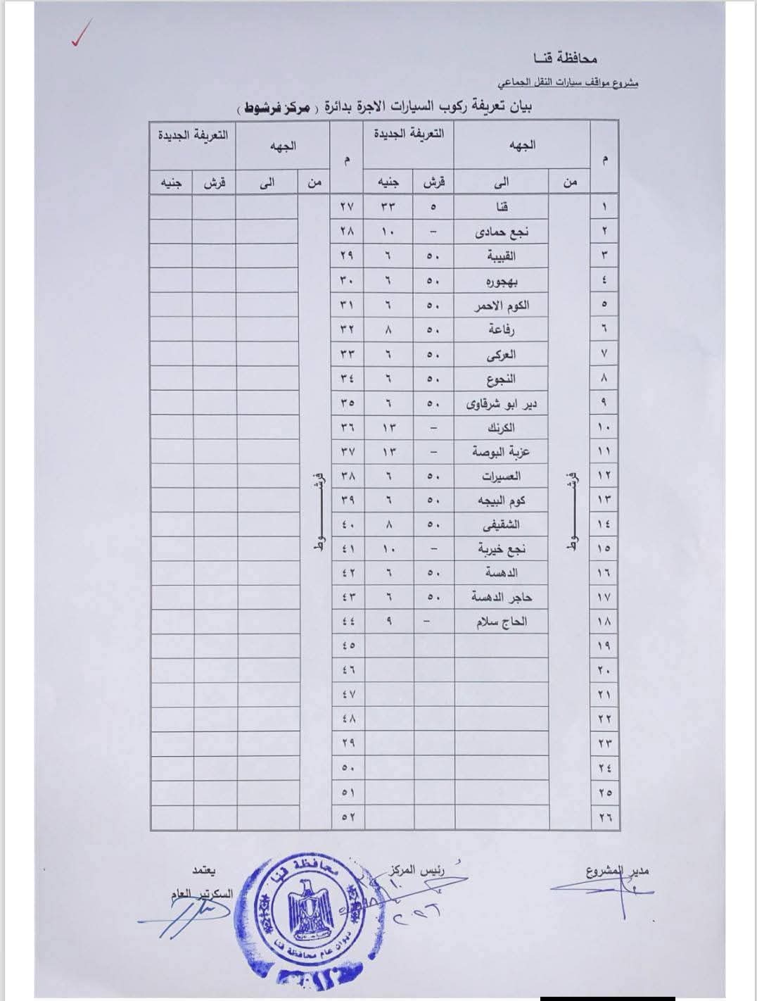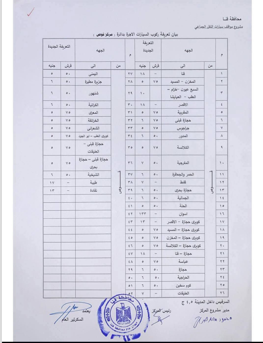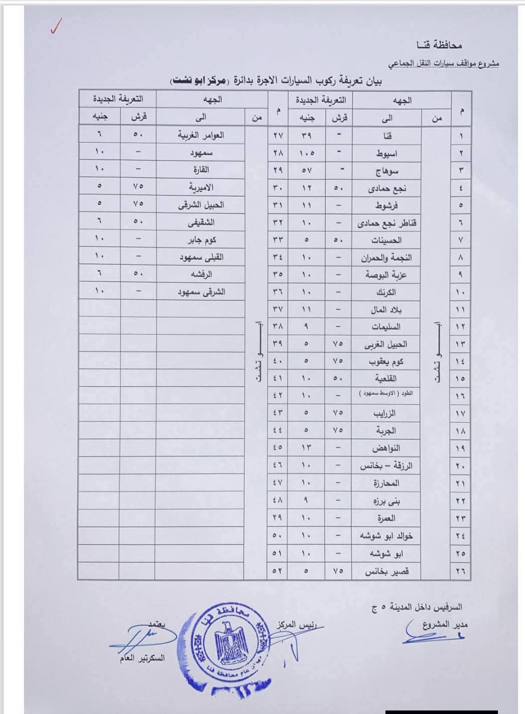 محافظ قنا يعتمد تعريفة