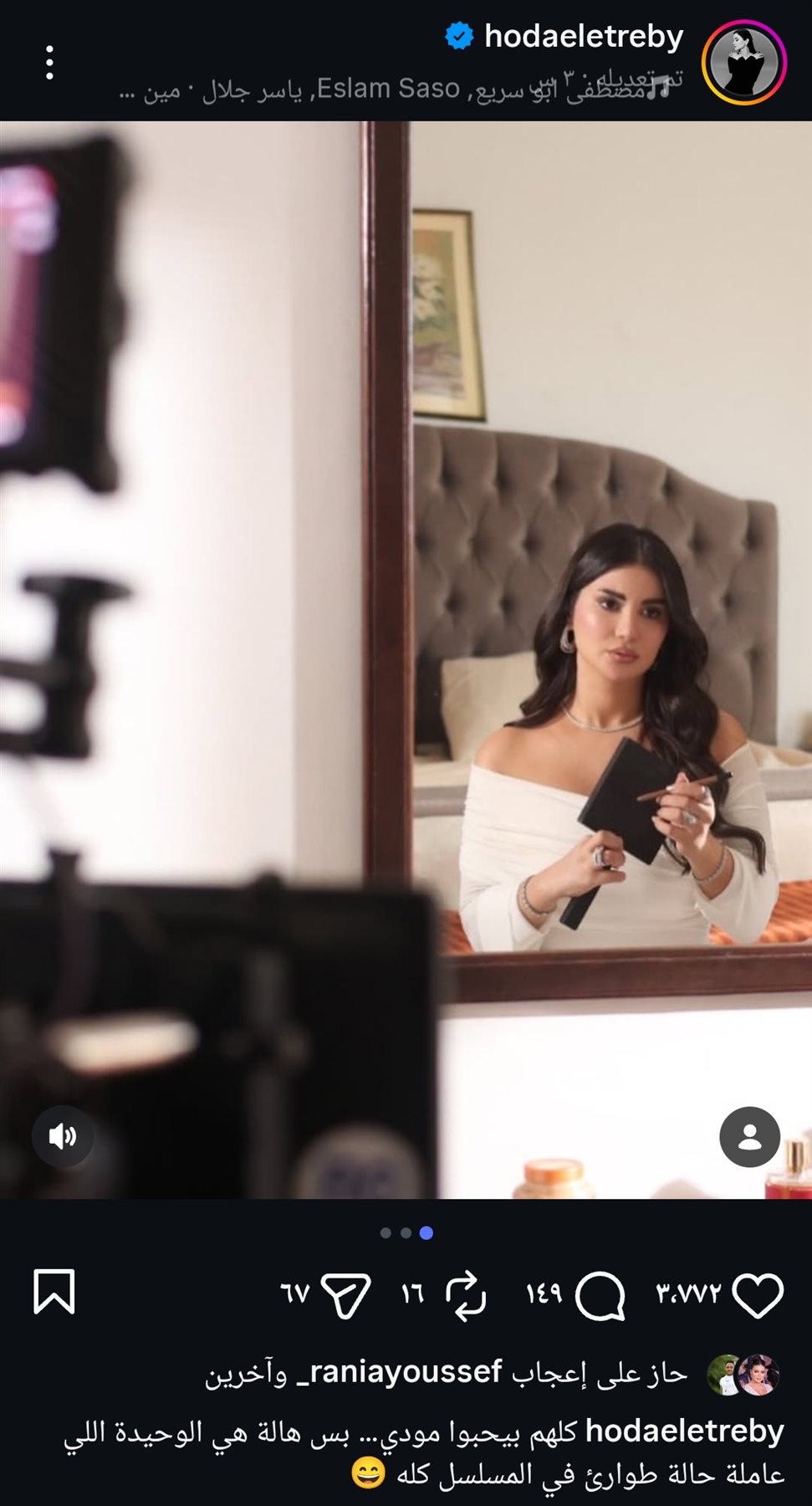 ونشرت الأتربي عبر حسابها الرسمي على إنستجرام صورًا من كواليس مسلسل "كلهم بيحبوا مودي"، حيث ظهرت بشخصية "هالة" أمام الفنان ياسر جلال، وعلّقت قائلة: