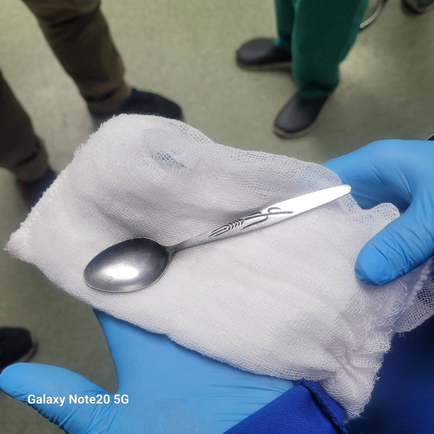 وفور استقبال الحالة، تم التعامل معها بشكل عاجل، حيث خضعت المريضة للفحوصات الطبية الدقيقة والأشعة السينية، والتي كشفت عن وجود ملعقة معدنية مستقرة مما يشكل خطرًا كبيرًا على جدار المعدة والأمعاء، مع احتمالية حدوث ثقب أو نزيف داخلي، الأمر الذي استدعى تدخلًا طبيًا فوريًا.