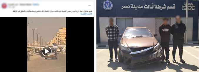جاء ذلك في إطار جهود أجهزة وزارة الداخلية، لكشف ملابسات مقطع فيديو تم تداوله بمواقع التواصل الاجتماعي تضمن قيام قائد سيارة بالسير بها دون توقف بأحد الطرق بالقاهرة وتدلى أحد الأشخاص منها، والزعم بقيام مستقلى السيارة بمحاولة اختطافه عنوة.