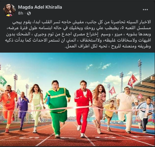 ماجدة خيرالله تشيد بـ مسلسل اللعبة 5: كوميديا ذكية ترسم البسمة