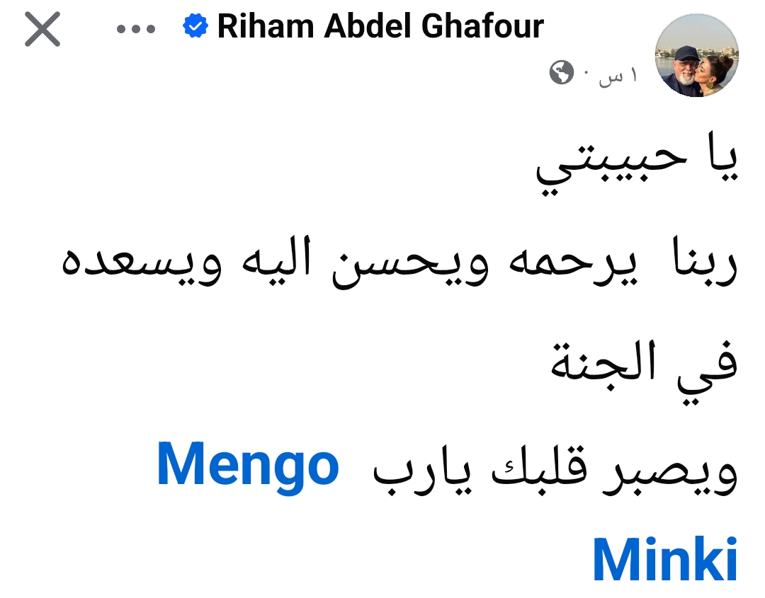 وكتبت ريهام عبد الغفور، لمنة شلبي عبر حسابها الشخصي بموقع التواصل الاجتماعي فيسبوك: “يا حبيبتي، ربنا يرحمه ويحسن اليه ويسعده في الجنة، ويصبر قلبك يارب”.