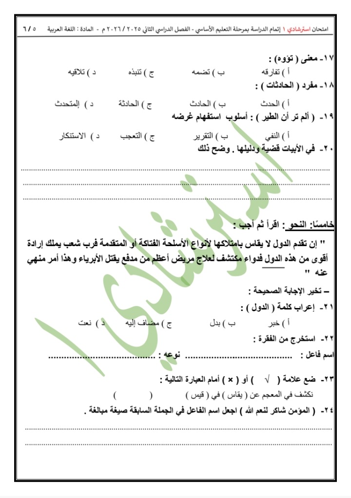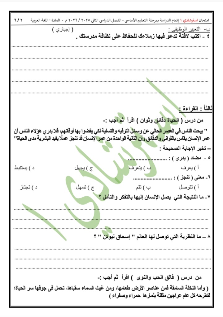 تعليم القاهرة تنشر نماذج “البوكليت” في اللغة العربية للشهادة الإعدادية 2026