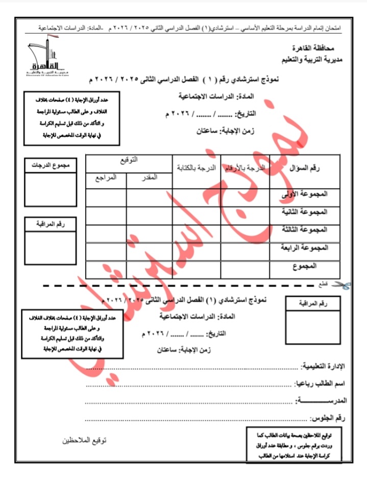 تواصل مديرية التربية والتعليم بمحافظة القاهرة جهودها لدعم طلاب الشهادة الإعدادية، من خلال إتاحة نماذج البوكليت في مادة الدراسات الاجتماعية، وذلك ضمن خطة شاملة تستهدف توفير نماذج تدريبية في جميع المواد الدراسية خلال الفصل الدراسي الثاني للعام الدراسي 2025/2026.