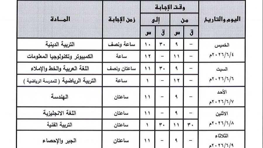 ننشر جداول امتحانات آخر العام لجميع المراحل التعليمية بالقليوبية