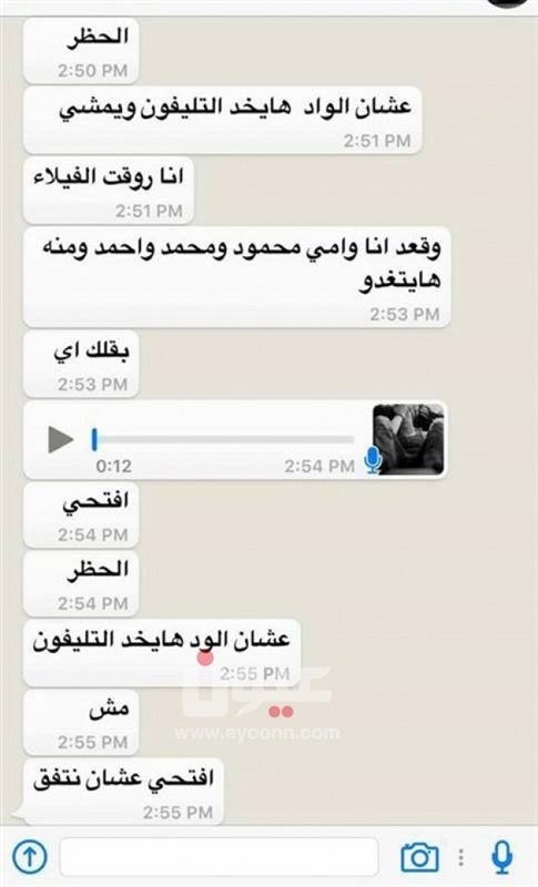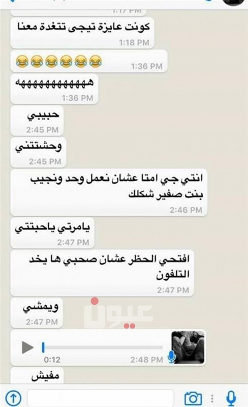 محادثتها مع «الصغير» عبر تطبيق «واتس اب» يطالبها بضرورة الذهاب له من أجل الاتفاق،