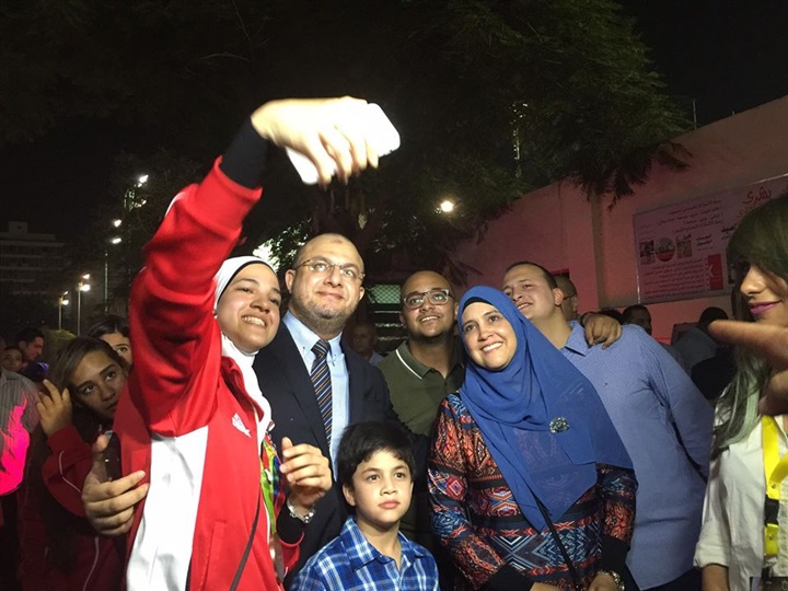 كان في إستقبال البطلة عدد من ابرز الحضور ويأتي على رأسهم مجلس إدارة الصيد برئاسة عمرو السعيد، وفرج العمري رئيس اتحاد التايكوندو، وأحمد سلطان المدير التنفيذي لاتحاد اللعبة، والعامرى فاروق العامرى وزير الرياضة الاسبق وشريف العريان واللواء جاسر رياض أعضاء مجلس إدارة اللجنة الاولمبية، ووائل جمعة نجم الاهلي السابق، وحازم امام وسحر الهوارى عضوا مجلس إدارة اتحاد الكرة ، والعامري فاروق وزير الرياضة الاسبق، وخالد القوصي عضو مجلس ادارة اتحاد كرة السلة، وعدد من كبار الاعلاميين والرياضيين.