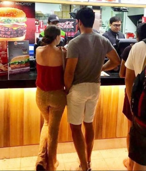 وسخر عدد كبير من رواد مواقع التواصل الاجتماعي من صورهما، فعلق أحدهم قائلًا: "شوفو بتجرى وراه عشان تمسك دراعه.. لكن وهما مخطوبين كان بيقول إنه بيزعل لما صورة تنزلهم وهوا مش ماسك إيدها.. بس نقوول إيه، طلع بوراك أبو حجر".