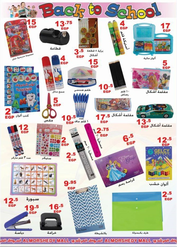 وشملت عروض المدارس على الآتي: "كشكول 40 ورقة بسعر 5 جنيهات، وكشكول 60 ورقة بسعر 6 جنيهات، و3 كشكول سلك بسعر 16 جنيها، ومقلمة أشكال بسعر 17.50 جنيها، ومسطرة 20 سم بسعر 2.75 جنيه".