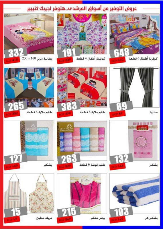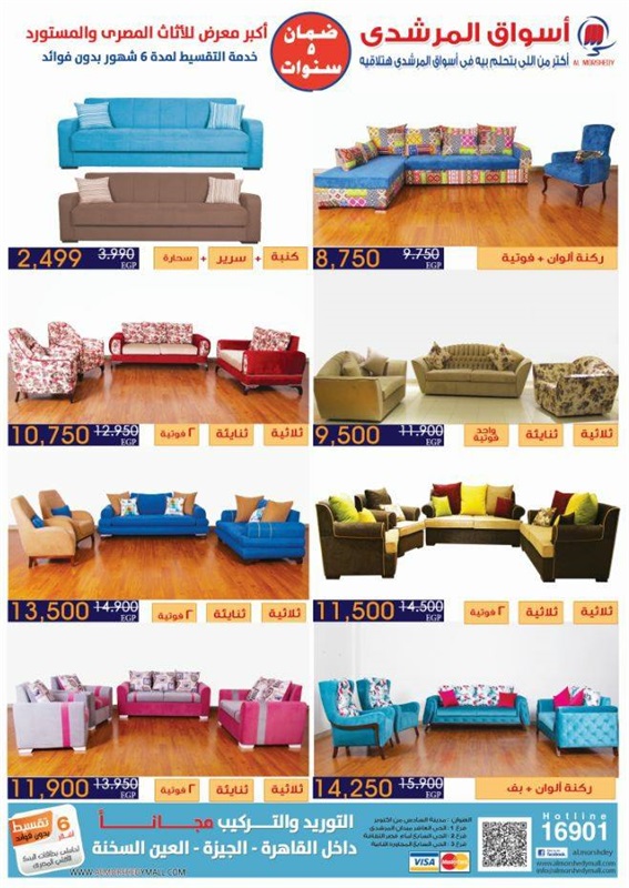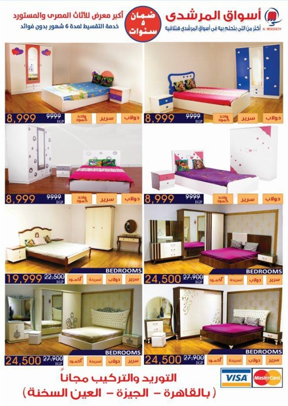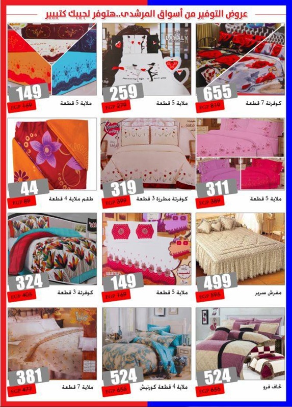 كما شملت العروض: "غرف نوم تتراوح بين 15900 إلى 24500 جنيه، وطقم ملايات 4 قطع بسعر 439 جنيهًا، ولحاف 3 قطع بسعر 663 جنيهًا، وكنبة سرير بسعر 2499 جنيهًا، ومكتب بسعر 450 جنيهًا".