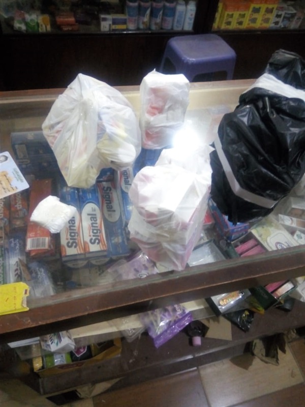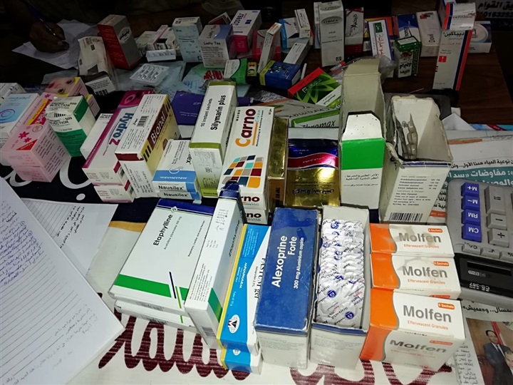عدد 120 عبوة مستحضرات طبية غير مسجلة بوزارة الصحة محظور بيعها - عدد 600 قرص ادوية صادر بحقها منشور من وزارة الصحة - عدد 135 عبوات اقماع للاطفال والكبار محفوظة في درجات حرارة غير مناسبة خارج الثلاجة مما يعرضها للتلف