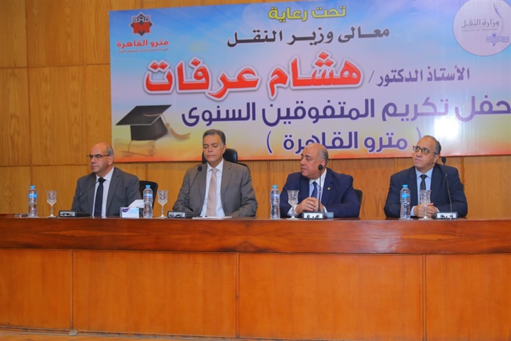 وصرح الدكتور هشام عرفات، وزير النقل، في كلمته خلال الإحتفالية، بأنه سعيد بتكريمه لأبناء العاملين بالمترو، من المتفوقين وحفظة القرآن الكريم، تقديرًا لما بذلوه من جهد في خدمة هذا المرفق الحيوي المهم، لافتًا إلى أنه سيظل داعمًا لكافة العاملين بالهيئات والشركات التابعة، لوزارة النقل لأنهم أساس نجاح المنظومة.