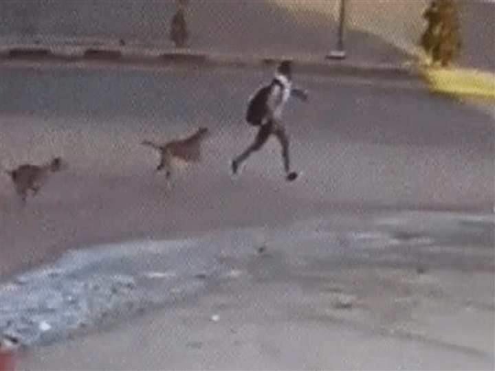 ورصدت كاميرا المراقبة الموجودة بإحدى العمارات بشارع الخمسين بزهراء المعادي الحادث الذى وصفه سكان حى المعادى بـ«البشع»، وأظهرت مطاردة الكلاب الضالة للطفل ومحاولته الهرب منهم ناحية الطريق لكنه فوجئ بسيارة قادمة نحوه بأقصى سرعتها؛ اصطدمت به ولاذ قائدها بالفرار دون الاطمئنان على الطفل، وتم نقله إلى مستشفى البنك الأهلى، وخضع لإجراء عملية جراحية فى ساقه.