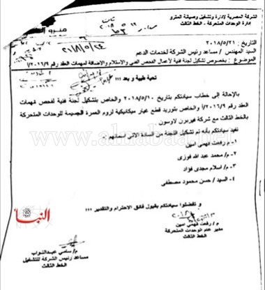 في البداية، يكشف خطاب بتاريخ 2/15/2018، من المهندس سامي عبد التواب، مساعد رئيس شركة المترو للخط الثالث، إلى المهندس مساعد رئيس الشركة لخدمات الدعم الفني، بتشكيل لجنة فنية للفحص الفني واستلام وإضافة المهمات بعقد شركة «فيربرن لاسون» رقم 92016، وتوريد قطع غيار ميكانيكية، لزوم «العمرة الجسيمة» للوحدات المتحركة بالخط الثالث، وتضم اللجنة كل من المهندسين الآتية أسماؤهم: رفعت فهمي، محمد عبدالله، إسلام مجدي، حسن محمود، وتم توقيع الخطاب من المهندس رفعت فهمي والمهندس سامي عبد التواب.