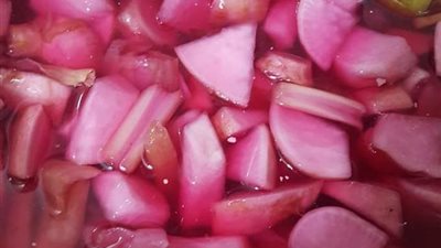 يتم مزج المياه والملح والسكر والخل والهريسه في البرطمان بعد ذلك يتم وضع البصل ويُترك لأول رمضان
