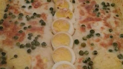 ثم تخبز في الفرن على حرارة 200 درجة مئوية لمدة 5 دقائق أو حتى تذوب الجبنة.
