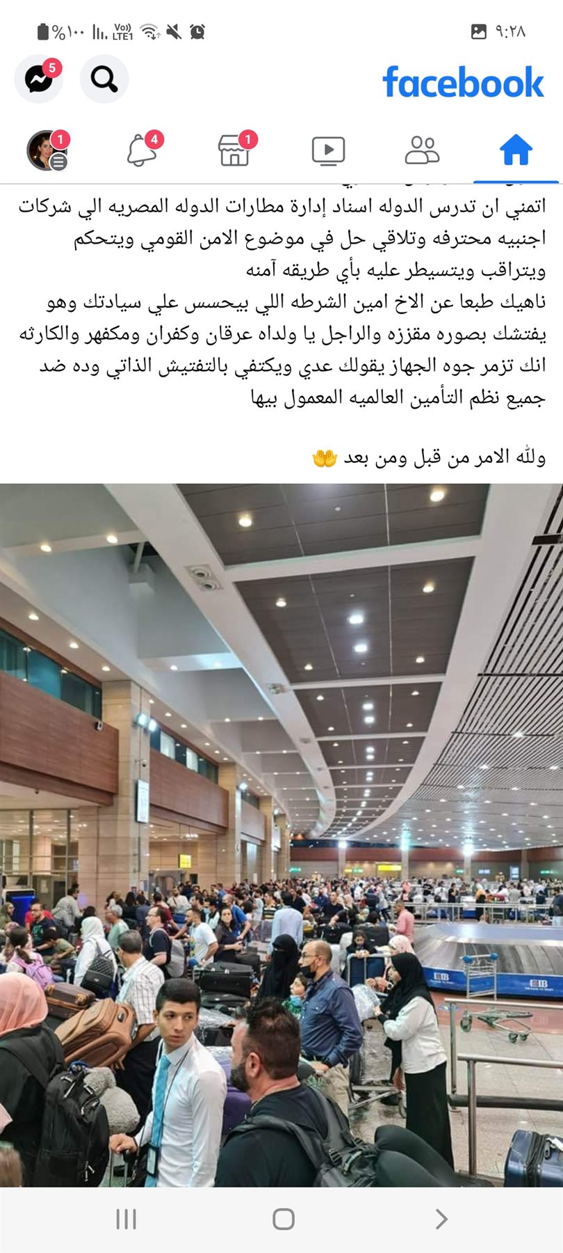 سكرين شوت لانتقادات أحمد عيسي لمطار القاهرة الدولى