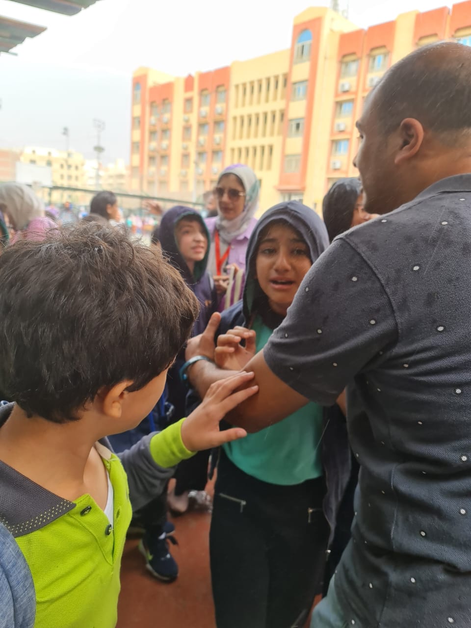 ودخل الأطفال في المرحلة التمهيدية والإبتدائية في موجة بكاء شديدة، وظل عدد من الأطفال في إنتظار أولياء أمورهم بساحة المدرسة أثناء المطر ومنهم من غادر مع أولياء أمور أصدقائهم " في حين أن لوائح المدرسة الداخلية تمنع إستلام أى شخص الطفل إلا ممن معه كارنية لإستلام الطفل"، والمشتركين في أتوبيس المدرسة غادروا وتركتهم المشرفة أمام منازلهم دون التأكد من وجود أولياء الأمور من عدمه.