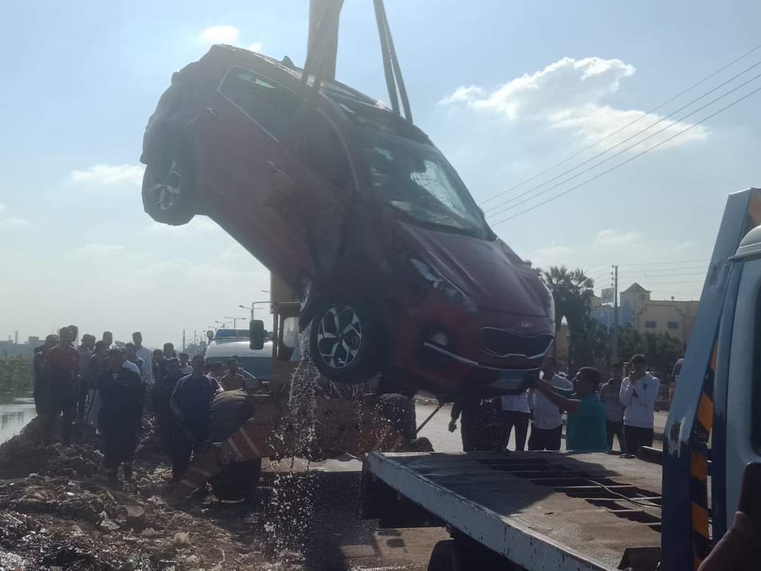 إصابة 3 أشخاص نتيجة سقوط سيارة بترعة الساحل بطريق طلخا المنصورة (صور)