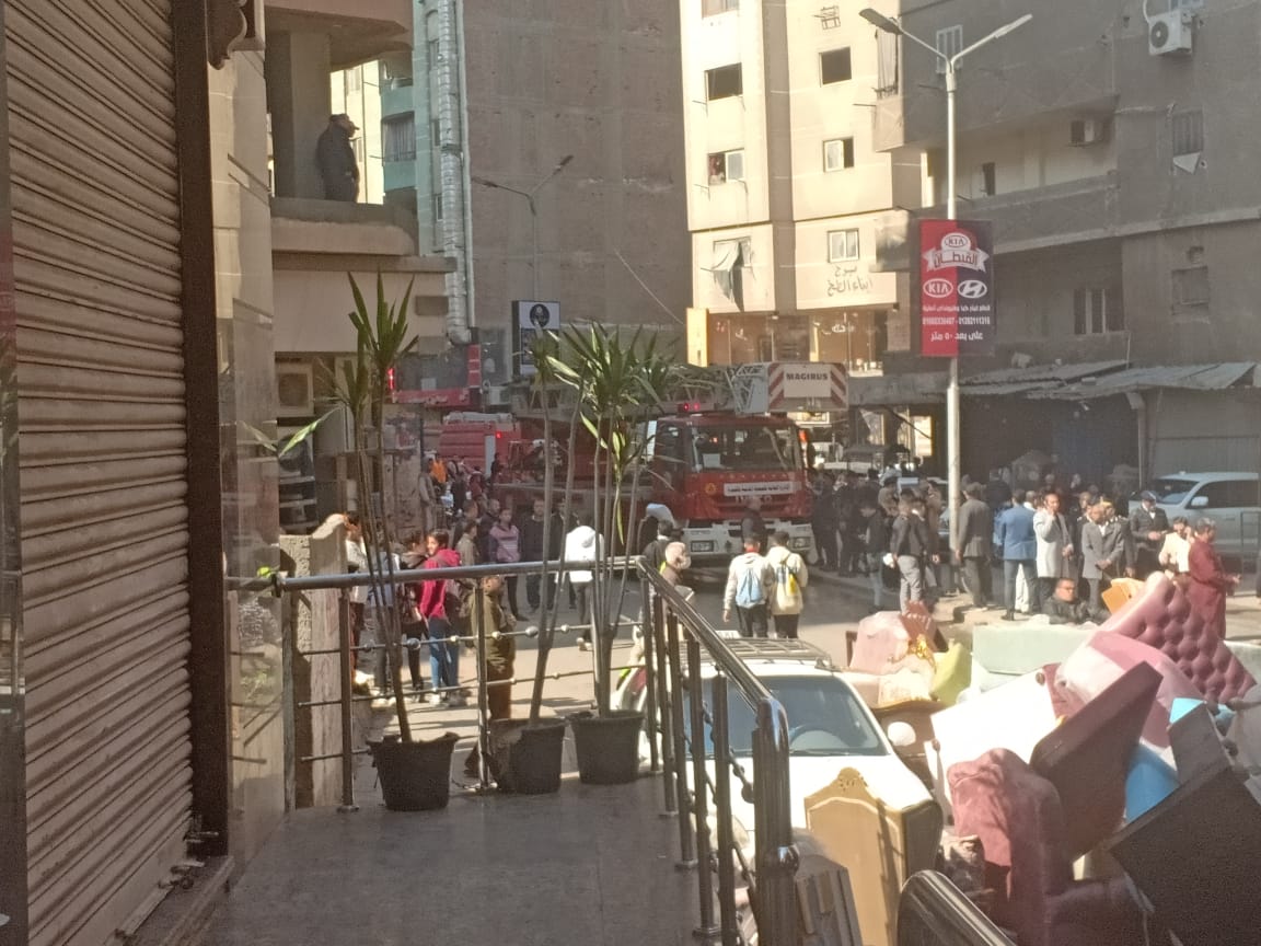 حريق بمحل لبيع الأثاث بأرض اللواء