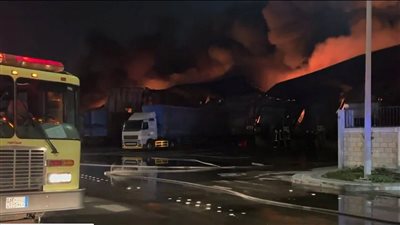 فيما أظهرت مشاهد للحريق ارتفاع ألسنة اللهب، بينما تحاول قوات الدفاع المدني السيطرة على الحريق.