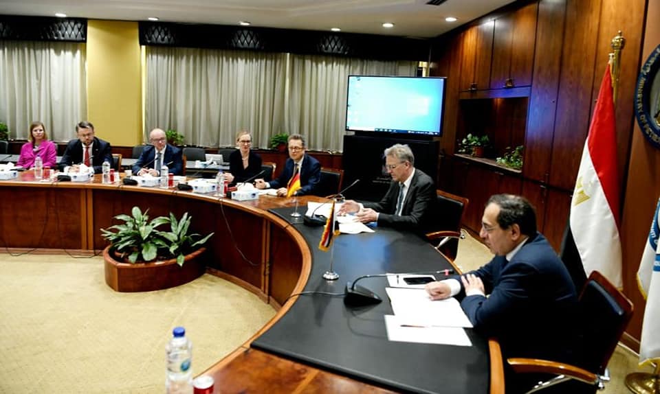 عقد المهندس طارق الملا وزير البترول والثروة المعدنية جلسة مباحثات موسعة مع الدكتور ستيفان وينزل  نائب وزير الشئون الاقتصادية والعمل المناخى الألماني للشئون البرلمانية الذي يزور القاهرة حاليا علي رأس وفد كبير من الشركات الألمانية للطاقات الخضراء والتكنولوجيا والبنية التحتية لبحث خطوات تفعيل التعاون مع مصر في مجالات الغاز الطبيعي المسال والهيدروجين والطاقات الخضراء في ضوء مذكرة التفاهم الموقعة بين الجانبين في نوفمبر الماضي.