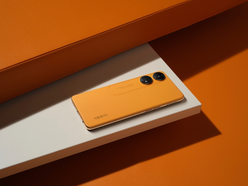 يُعتبر الهاتف Reno8 T استكمالًا للتصميمات الكلاسيكية لسلسلة هواتف Reno الشهيرة، وهو متوافر بلونين وهما البرتقالي والأسود، واللون البرتقالي يأتي بملمس الجلد المميز، وصُنع من خلال تصميم مُبتكر باستخدام الألياف الزجاجية Fiberglass-Leather.